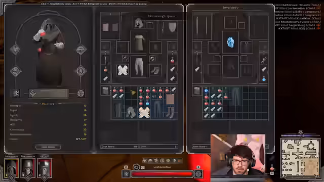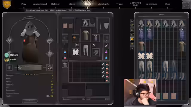 05:09:08Die Spieler diskutieren über die Effektivität von Ausrüstung und Stats. Ein Spieler erwähnt, dass er über 80 Stunden Spielzeit hat und ein 'Blind'-Run 'krank hart' werden würde. Es wird über die Nützlichkeit von 'Knowledge' auf Ausrüstung gesprochen, wobei ein Spieler angibt, dass er genug 'Knowledge' durch 'Plus All' und seinen Skin hat. Es kommt die Idee auf, dass es ein geheimes Achievement geben könnte, wenn man alle Bosse 'Deathless' besiegt, ähnlich wie in Tarkov. Ein Spieler bemerkt, dass sein Spiel abgestürzt ist und 'Trollpelz' gerade günstig ist. Die Möglichkeit, in Dark and Darker über 'Bossmatz' Ausrüstung zu craften, wird bestätigt. Es wird auch besprochen, dass eine 'Abo' sogar eine wöchentliche Mission war und die Spieler sich fragen, was sie mit dem ganzen Gold machen sollen, das sie farmen.