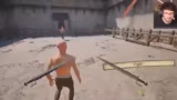 05:30:19Nach technischen Vorbereitungen und Einladungen in einen gemeinsamen Stream startet der erste Spielabschnitt. Spieler beginnen mit verschiedenen Waffen wie Messern oder Fäusten und versuchen, die ersten Bosse zu besiegen. Nach einem Sieg erscheint die Möglichkeit, die Waffe durch dreimaliges Randomisieren zu ändern, oder eine Frage an den Organisator Soon zu stellen, um am Rad drehen zu können.