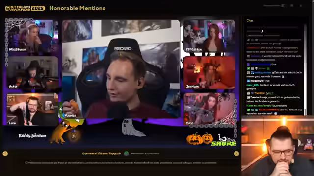01:38:36In der Kategorie beste Zuschauerinteraktion wird ein Clip von Cars Crafter vorgestellt. In diesem Clip wird ein verlorenes Handy aus einem Spalt unter einer Brücke gefischt. Der Finder, ein Zuschauer, erhält daraufhin von dem Besitzer Schraddi einen Finderlohn von 1000 Euro. Der Streamer lobt die Ehrlichkeit und den unkomplizierten Vorgang. Ein weiterer Clip zeigt eine Szene, in der eine Person nach einem verlorenen Code sucht und später von einem Zuschauer mit einem überraschend bestellten McPlant-Begrußt wird, der nach persönlichen Wünschen zubereitet wurde. Der Streamer erkennt an, dass solche unvoreingenommenen Interaktionen sehr wertvoll sind.