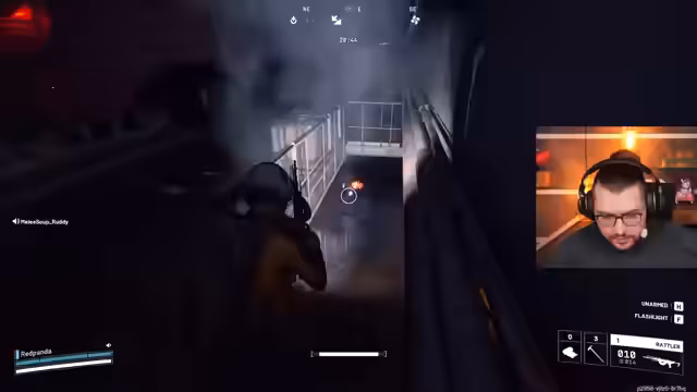 04:59:24Der Streamer plant seine nächste Aktion und beschließt, einen 'Freeloader-Raid' zu machen, bei dem er ohne Ausrüstung rein geht, um nur High-Class-Loop zu farmen. Auf dem Weg dorthin überlegt er, wo er 'Lightbulbs' finden kann, die er für ein Upgrade benötigt. Er wechselt den Standort zur 'Electrical Substation' und betritt das Gebäude. Kurz darauf wird er von einem anderen Spieler entdeckt, der eine Falle gegen ihn stellt. Der Streamer vermeidet die Falle, eliminiert den Gegner und nimmt dessen Bastion.