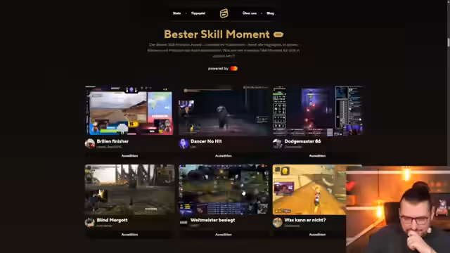 00:25:12Der Streamer beginnt mit der Begutachtung der Nominierungen in verschiedenen Kategorien. Bei „Bester Rage-Moment“ konkurrieren Clips von Endertrix und Hadi, wobei ersterer für seine unterhaltsamen und relatable Ausbrüche gelobt wird. Bei „Bester IRL-Moment“ steht ein Konflikt auf einer öffentlichen Veranstaltung im Fokus, bei dem der Streamer aufdringliche Befragungen mit selbstbewusstem Auftreten beantwortet, was als natürlicher und starker Clip gewertet wird. Im „Besten Gaming-Moment“ bewundert der Streamer eine zufällige, lustige Situation im Spiel Rocket League mehr als einen skilltechnisch herausragenden Moment.