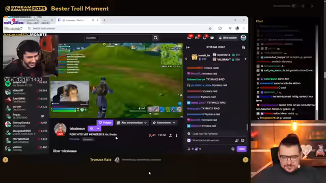 01:55:46Die Kategorie 'Bester musikalischer Act' präsentiert verschiedene talentierte Musiker, darunter Baloui, Lara mit einer Katze und GTA-RP-Musiker. Die Qualität der Darbietungen wird gelobt, wobei die Entscheidung zwischen Vera und IFA als besonders schwierig empfunden wird, da alle Beiträge 'insane stark' sind. Es wird betont, dass die Bewertung subjektiv ist und nicht auf 'gut oder schlecht' basiert, sondern darauf, welcher Clip den Streamer am meisten 'gecatcht' hat. Anschließend werden 'Beste Troll-Momente' besprochen, darunter ein Telefonstreich mit 'Carscrafter' und ein vermeintlicher Wurm, der gegessen werden soll. Ein weiterer Troll-Moment, bei dem ein kleiner Streamer mit einem großen Raid von Trimax veräppelt wird, wird kritisch hinterfragt, da der Kontext der Beziehung zwischen den Beteiligten unklar ist und es als 'schade' empfunden wird, wenn es nur zum Verarschen dient.