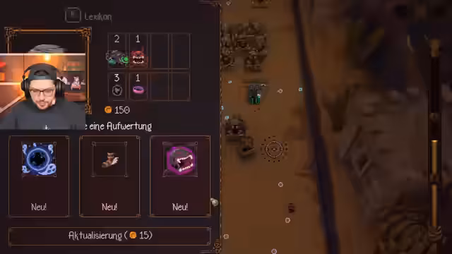 06:27:55Der Streamer plant, auf der Messe einen Stand mit 'Scanbetrugstüten' zu haben, die Souvenirs aus früheren Streams enthalten. Diese Tüten sind mit QR-Codes versehen, die über eine App gescannt werden können, um Schnittbilder der jeweiligen Objekte abzurufen und auf einem Bildschirm sowie im Greenscreen für die Zuschauer darzustellen. Danach wird das Spiel 'Lords of Ravage' gestartet, ein rundenbasiertes Rogue-like-Spiel, in dem die Spieler die Rolle der Bösen übernehmen. Der Streamer beginnt mit dem Tutorial und lernt die grundlegenden Mechaniken wie 'Maim', 'True Damage' und 'Unnatural Strength' kennen. Er experimentiert mit verschiedenen Fähigkeiten und der Positionierung seiner Einheiten, wobei er sich fragt, ob es möglich ist, im Tutorial zu verlieren. Er kommentiert die deutsche Übersetzung des Spiels und die Möglichkeit, Einheiten aufzustellen und zu leveln.