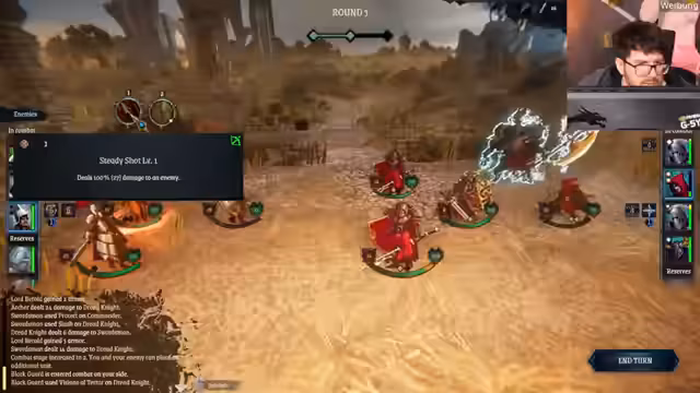 07:21:33Der Streamer befindet sich in einem Bosskampf gegen einen Archer, der 19 Attack und 100% Schaden an Gegnern verursacht. Der Boss kann zudem fünf Stacks Fokus auf einen Verbündeten anwenden, wodurch dieser 100% Schaden an einem zufälligen Gegner verursacht. Strategisch versucht der Streamer, seine Dreadknights zu nutzen und den angeschlagenen Archer des Gegners zu eliminieren. Es werden Dornen auf sich selbst angewendet, um Blutungsschaden zu verursachen. Der Streamer überlegt, ob er seinen eigenen Archer einsetzen soll, der 27 Schaden verursacht, im Gegensatz zum gegnerischen Archer mit 15 Schaden. Die Frage, ob der Kampf sofort endet, wenn der Commander besiegt wird, oder ob alle Einheiten eliminiert werden müssen, bleibt offen. Es wird Shadow Armor eingesetzt, um die eigenen Einheiten zu buffen, während der Streamer versucht, die gegnerischen Einheiten nacheinander zu finishen. Die Möglichkeit, einen Schwierigkeitsgrad auszuwählen, wird erwähnt, wobei der Streamer auf dem normalen Schwierigkeitsgrad bleiben möchte.