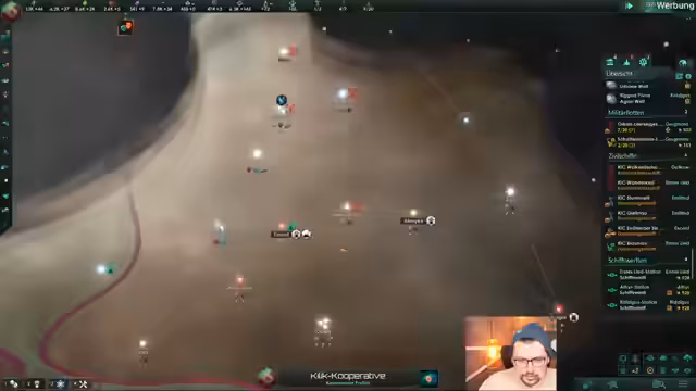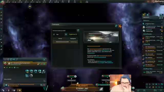 04:05:56Das Reich sah sich einem feindlichen Angriff durch die 'Äther-Aliens' ausgesetzt, der eine Forschungsstation zerstörte. Dies führte zu einer belastenden Konfrontation, bei der der Streamer beschloss, die angreifende Flotte auszuschalten. Parallel dazu wurde auf Rick Prime ein fremder Pilz entdeckt, der als hochentwickelter Spionage-Awardismus eingestuft wird, der Signale über eine große Distanz aussendet und möglicherweise Teil eines galaxisweiten Netzwerks ist, was den Streamer zu weiterer Forschung anregte.