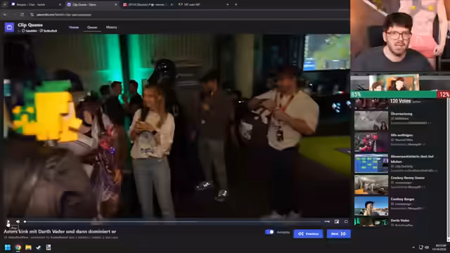 00:00:00Der Stream beginnt mit einer technischen Verzögerung beim Countdown, was den Streamer zu spontaner Smalltalk-Zeit zwingt. Er beschäftigt sich mit seinen anstehenden Events, darunter die Polaris-Messe und das Sabaton-Festival, bei denen er primär als Zuschauer anwesend sein wird. Gleichzeitig kündigt er einen neuen Musikformat-Tag an, den "Drum'n'Bass Dienstag" mit Yannick, und spielerische Vorschläge wie "Metal-Mittwoch" und "Polka-Donnerstag". Abschließend gibt er einen Einblick in seine Überlegungen zum Thema Streaming-Erfolg, der manchmal weniger von Charisma als von Kontroversen abzuhängen scheint.