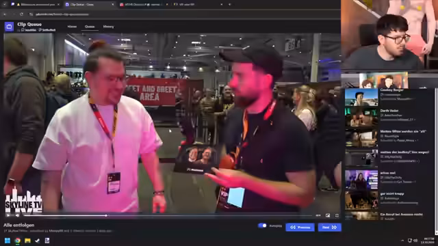 01:52:11Der Stream beginnt mit positiven Eindrücken von der Polaris-Messe, die vom Streamer als extrem entspannt und gut produziert beschrieben wird. Er lobt insbesondere die Arbeit von Nerdstar und die angenehme Atmosphäre. Es folgt ein etwas verwirrter Abschnitt über diverse Videospiele wie Counter-Strike und Halo, bei dem der Streamer über einen angeblichen Sieg in Counter-Strike spricht, dies aber korrigiert und von einem Sieg in Halo berichtet. Des Weiteren erwähnt er ein bestelltes Ölgemälde und den Moment, als Matteo Aster ein Armdrücken gewinnen konnte.