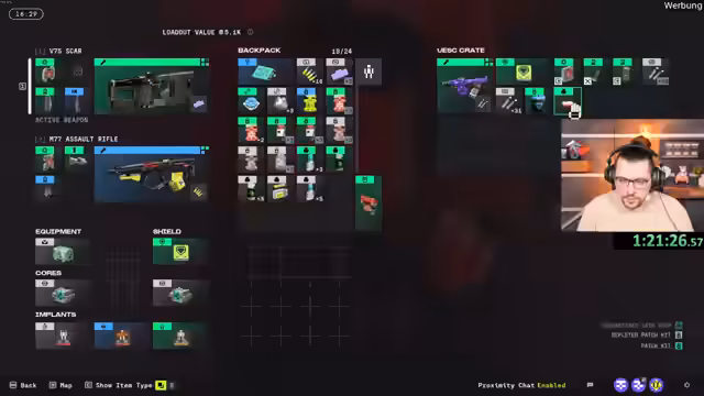 04:04:21Eine detaillierte Erläuterung des Spielsystems von Marathon folgt. Der Streamer beschreibt die Klassenbasierte Mechanik, die Verwendung von Fähigkeiten, sogenannten "Cores", und die Rolle von Fraktionen. Sein Charakter, der "Thief", kann die Umgebung scannen und eine Drohne zum Fliegen und zum Stehlen von Beute einsetzen. Er erklärt den Unterschied zwischen Loadout-Wert und Loot-Wert, der für den anstehenden Wettbewerb relevant ist, und geht auf die automatische Verwaltung von Inventar und Handel ein.