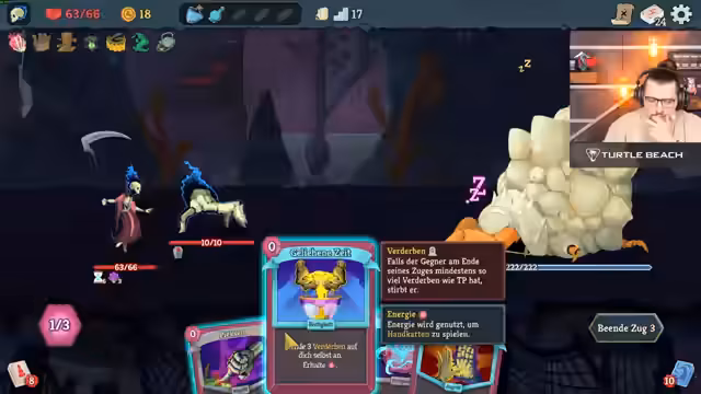 07:30:45Nach der Aufgabe des Disney-Spiels wechselt der Streamer zu 'Slay the Spire'. Er stellt den Charakter 'Die Totenbinderin' vor, die von einem Haustier namens 'Osti' begleitet wird, das als Tank fungiert. Das Gameplay dreht sich um Kartenspiel und strategischen Kampf. Der Fokus liegt auf Karten, die 'Verderben' verursachen und 'Osti' stärken, um Schaden abzuwehren. Das Tempo ist schneller und weniger frustrierend als das vorherige Spiel.