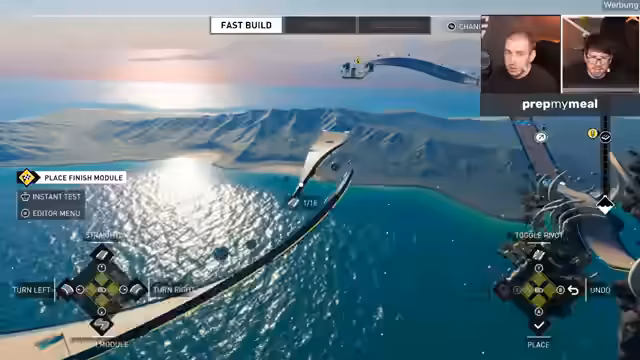 10:05:33Beim Testen der ersten gebauten Strecke treten massive Probleme auf. Die Überleitungen zwischen den Modulen sind extrem holprig und unangenehm zu fahren. Die Rennsicht wird als unangenehm und unpraktisch empfunden, was den Realismus des Spiels in Frage stellt. Nach mehreren gescheiterten Versuchen, eine sinnvolle Verbindung herzustellen, wird die gesamte Strecke gelöscht. Der Stream gibt zu, überfordert zu sein, und der Fokus verlagert sich auf eine einfachere, gerade Strecke.