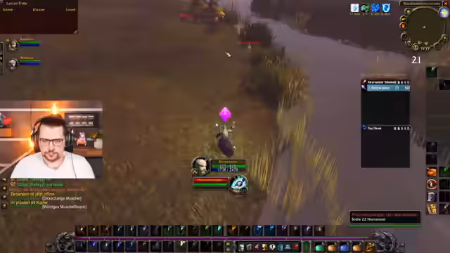 05:22:53Der Streamer interagiert mit Gildenmitgliedern, um gemeinsam Dungeons zu erkunden. Er schließt sich kurz Janet an, die jedoch bald mit ihrer Gruppe weiterzieht. Anschließend sucht er aktiv nach weiteren Gruppenmitgliedern für ein gemeinsames Vorgehen in Schattenfang. Er erkundet dabei verschiedene Gebiete wie Sumpfland und Hügelland, um passende Mobs zum Farmen zu finden und gleichzeitig nach potenziellen Mitspielern Ausschau zu halten.