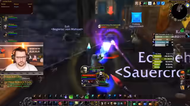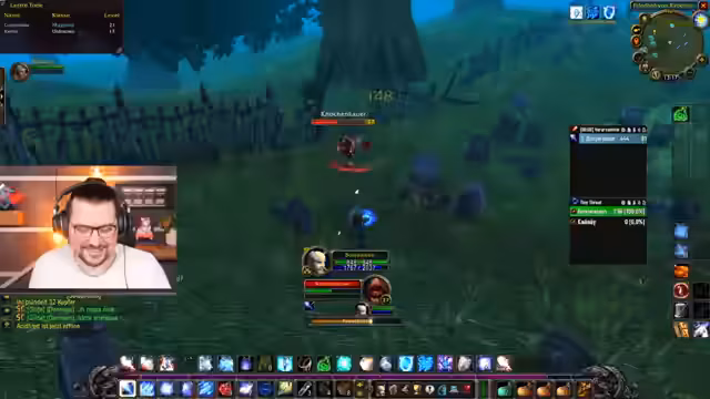 10:50:06Der Streamer geht auf verschiedene Gameplay-Mechaniken ein. Er klärt, dass es sich bei den häufigen Angriffen des Bosses um 'Shadow Bolts' und nicht um 'Kettenblitze' handelt, was einfache Projtilangriffe sind. Es wird auch eine Diskussion über die Fähigkeiten der Begleiter-Eule geführt, die ausschließlich auf den Boss zielt. Ein großer Teil des Abschnitts widmet sich dem Add-on 'Decursive', das das Entfernen von Debuffs erheblich vereinfacht, indem es visuell anzeigt, welche Person einen Curse oder eine Krankheit hat und per Klick entfernt werden kann.