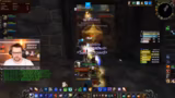 06:27:49Die Gruppe trifft sich in der Hauptstadt Sturmwind, um die wichtigen World Buffs zu erhalten und Gegenstände auszuteilen. Der Streamer organisiert das Treffen an der Bank und verteilt Taschen und Zauberstäbe an seine Mitspieler. Die hohe Bevölkerung in der Stadt führt zu technischen Problemen und Layer-Wartezeiten, was die Koordination erschwert, aber letztlich erfolgreich abgeschlossen wird.