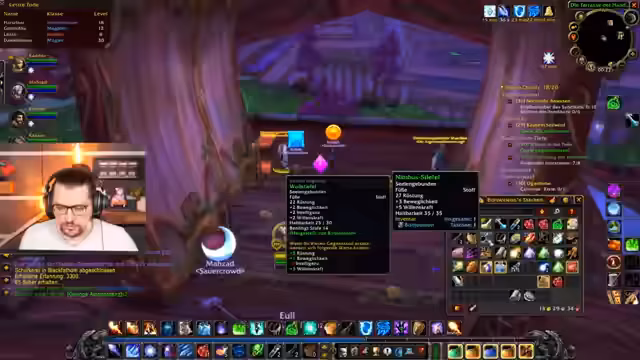 08:58:44Der Streamer berichtet, dass er den Buff erhalten hat, was als insane beschrieben wird. Der Buff gewährt 10% Bewegungsgeschwindigkeit und 15% auf alle Worte. Euler, ein Gruppenmitglied, hat den Buff jedoch nicht, was das Ganze als GG (Game Over) erscheinen lässt. Er macht einen Stopp in Stormwind und ist gespannt auf den 'Glückskick', der über den Verlauf der Instanz entscheiden soll.