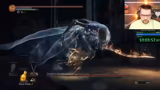 01:02:12Nach dem Elden Ring-Teil wechselt der Streamer zum geplanten No-Death-Run der Dark-Souls-Trilogie. Der Streamer berichtet, dass er bereits Dark Souls 2 zu 100% und Dark Souls 1 zu 99% ohne Tode durchgespielt hat. Heute soll nun Dark Souls 3 das Ziel sein. Wenn das gelingt, will er Dark Souls 1 retrospektiv nochmal perfektionieren, um die gesamte Trilogie abzuschließen.