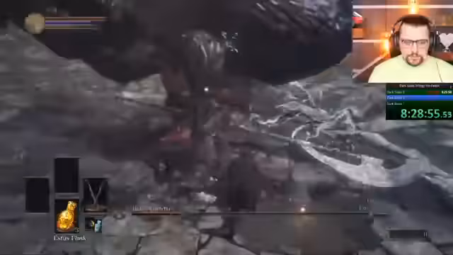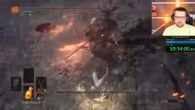 02:59:22Nach einem unerklärlichen Bug, der den Streamer im vorletzten Bosskampf von Dark Souls 1 um 100% brachte, wird das Spiel neu gestartet. Grund für den Restart war, dass der damalige Lauf nicht mehr als sauberes 'No Death'-Run galt. Um den verpaschten Run auszugleichen, wird der Plan geändert: Nach Dark Souls 3 soll direkt erneut Dark Souls 1 folgen, da Dark Souls 2 bereits als 'No Death' gilt.