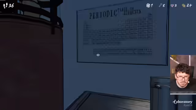 11:09:47Der Streamer betritt verschiedene Klassenzimmer, um deren Rätsel zu lösen. In der ersten Klasse werden Tiere und in der zweiten Klasse Mathematikaufgaben behandelt, die jedoch mit einem falschen Rechenzeichen gearbeitet werden. Die dritte Klasse führt zu einem wissenschaftlichen Rätsel mit chemischen Elementen, bei dem versucht wird, die Dichte von Wolfram und die korrekten Bezeichnungen von Wasser in seinen Aggregatzuständen zu finden. Dies erfordert das Auffinden der passenden Elementsymbole und das Lösen der Gleichungen.