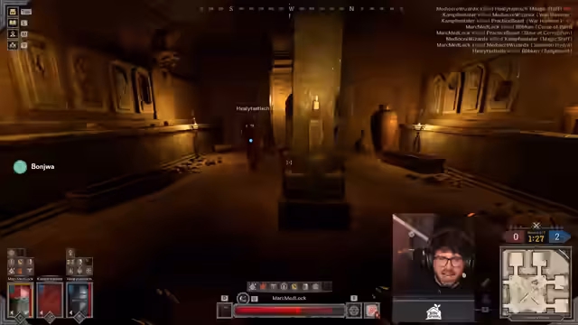 01:49:16Zu Beginn des Streams werden die Vorteile eines Heilers im Team diskutiert. Ein Heiler ermögliche es, durch massive Heal-Bubbles und Heals zu überleben und länger im Kampf zu bleiben. Der Magic Damage Bonus sei ebenfalls ein wichtiger Faktor, was neue Erkenntnisse für das Team bringe. Es wird ein Fokus auf das gezielte Eliminieren von Gegnern in einem Swarm Trap gelegt, um deren Verteidigung zu durchbrechen.
