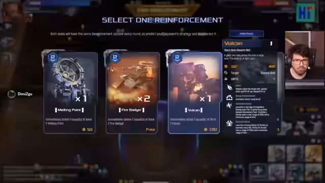 03:19:36Es wurden die neuen, erst kürzlich eingeführten Einheiten 'Raiden' und 'Phantom Rays' in Mechabellum besprochen. Dabei wurde erwähnt, dass die 'Raiden' bereits angepasst (genervt) wurden und ihre Fähigkeiten erklärt. Auch die Strategie gegen die neuen fliegenden Einheiten wurde angesprochen. Die Turnierankündigung gegenüber Soon und Edo als 'Ego-Pumpe' für den Initiator Demi diente als weiterer Motivationsgeber für das bevorstehende Match.
