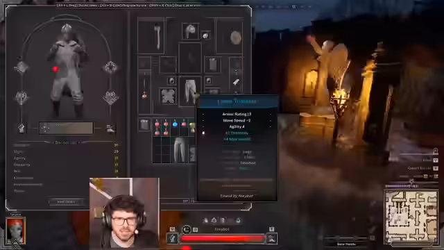 00:20:50Nach einem erfolgreichen Raid und dem Erlangen eines soliden Gearscores von 120 beginnt der Streamer mit der Optimierung seines Loadouts. Er nutzt den Goldsmith, um Items wie Ringe zu rollen und sie mit 'True Physical Damage' oder anderen Attributen wie 'Vigor' und 'Agility' zu verbessern. Ziel ist es, einen Build zu schaffen, der maximale Agilität und physischen Schaden bietet, um im PvP wettbewerbsfähig zu sein und wertvollen Loot wie Frost-Amulette und agilitätsstarke Ringe zu erhalten.
