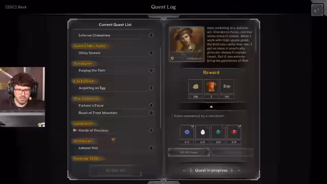 01:31:15Nach einem Kampf äußert der Streamer sein Mitleid gegenüber Gegnern, die am Ende doch nicht gekämpft haben wollen. Er argumentiert, dass seit Einführung des PvE-Modus man guten Gewissens alles angreifen könne, da der PvP-Modus nun klar definiert sei. Danach berichtet er vom frustrierenden Erlebnis, ein legendäres Buch im Kampf zu verlieren, und schwört, dass er ab sofort allen Sorcerern den Krieg erklären werde. Er sammelt weiter Loot, ein Ring mit viel Heilung stört ihn jedoch, da er zu viel davon hat.