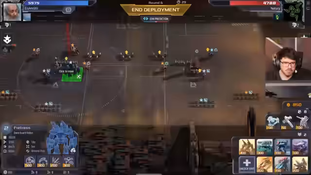 08:25:48Der Overlord wird anstelle von UFOs gegen Mustang-Spam eingesetzt, obwohl er als der schlechteste Giant angesehen wird. Es werden Skorpione mit Siege-Upgrade gebaut. Der Gegner pickt dasselbe wie der Streamer, nur mehr davon. Der Streamer hat Mustangs, die Raketen abwehren, wodurch die Phantom Rays des Gegners keinen Schaden machen. Das Problem ist, die Sabertooth zu eliminieren, während man von den Phantom Rays überrollt wird. Es wird überlegt, in Range für die Mustangs zu investieren, damit sie nicht so weit reinfahren. Der Tower ist offen und sollte gesniped werden. Es wird befürchtet, dass der Gegner auf Vulcans geht. Der Gegner investiert stark in die Phantom Rays, aber der Streamer gewinnt knapp und macht das Schild des Gegners kaputt. Fast Seer könnten gut gegen die Phantom Rays sein, eventuell mit EMP, um das Cloaken zu verhindern. Ein Kredit wird in Betracht gezogen, da es die letzte Runde sein könnte. Incendiary Stormcaller werden gebaut, um die Mustangs des Gegners zu verbrennen. Der Tower des Gegners wird gesniped, und ein Overlord wird in die Backline des Gegners gespawnt. Der Streamer behält fast seine gesamte Armee. Die Würmer des Gegners sind gefährlich und stark gelevelt. Die Tower gegen Raketen haben sehr geholfen. Die Mustangs überleben mittlerweile ganz okay. Der Rechner des Streamers explodiert fast aufgrund der vielen Phantom Rays des Gegners. Der Streamer verliert wahrscheinlich, da der Gegner nur eine Unit spamt und trotzdem gewinnt. Es wird überlegt, den Tower des Gegners nochmal zu snipern. Die Mustangs mit Antti wären wahrscheinlich nicht effektiver gewesen, da Phantom Rays tanky sind. Es wird geschätzt, dass ca. 2 Packs Mustangs pro Phantom benötigt werden, wenn sie das 10-Schuss-Upgrade haben. Die Phantom Rays sind schwer zu kontern, da sie alles auf einmal schießen. Der Streamer ist gut aufgestellt. Ein Stormcaller Move wird gemacht. Raiden ist viel besser gegen die Phantom Rays. Es wird überlegt, Hounds zu bauen, aber auch ein Rhino-Flank wird in Betracht gezogen. Der Sniper ist komplett beschäftigt, und es wird Chef-Clear benötigt.