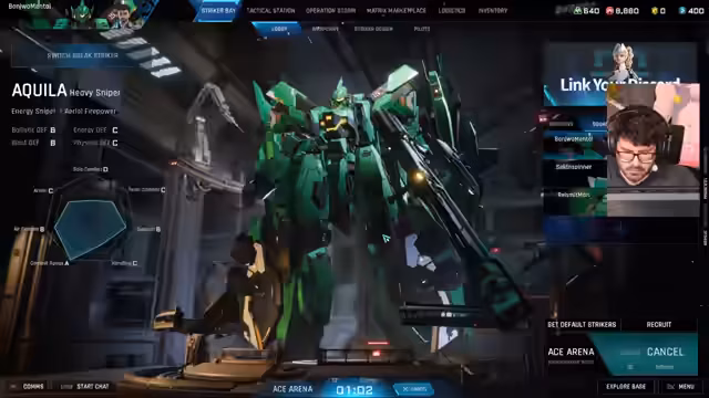 01:44:13Nach einer Runde der Niederlage entscheidet sich der Streamer für einen anderen Mech, Tricera, und plant, in ein anderes Spiel zu wechseln. Das Team bespricht die nächste Strategie, die darauf abzielt, eine bestimmte Waffe oder Mech zu fokussieren. Die Diskussion ist technisch und betrifft den optimalen Einsatz der Fähigkeiten und Waffen. Es ist eine klare Taktik zur Verbesserung der Performance in der nächsten Runde, bei der sie die Schwachstellen des Gegners ausnutzen wollen.