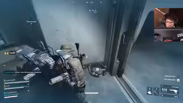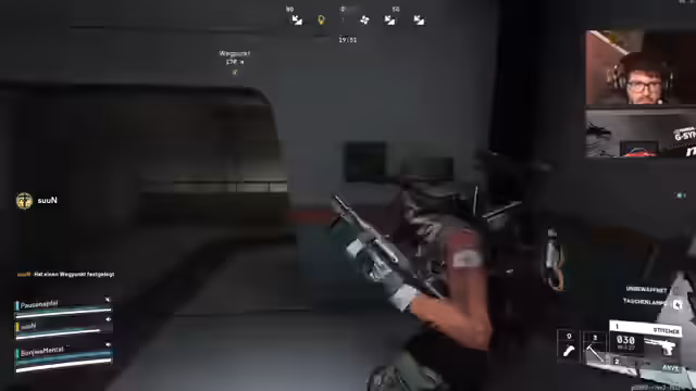 01:26:44Der Streamer begegnernt mehreren Kämpfen auf der Map, darunter gegen Gegner wie die Wespe und durchsetzt sich mit einer krassten Gangsterrolle. Dabei kommt es zu intensiven Schusswechseln, strategischen Manövern und der Nutzung von Granaten und Fallen, um Gegner auszuschalten oder in die Flucht zu schlagen. Der Streamer koordiniert sich mit seinem Matteo, um gemeinsam vorgehen und Gegner zu überwältigen.