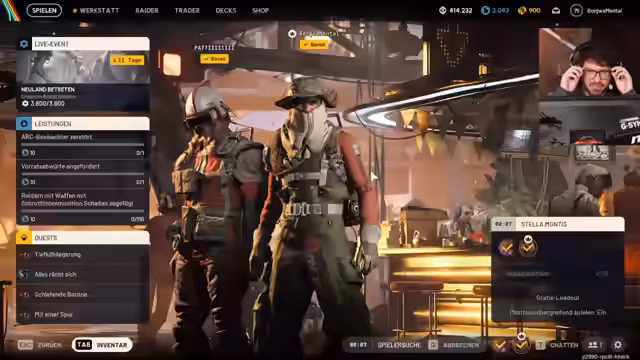 02:00:04Die Spieler beschließen, ihr Gear zu upgraden und sich für einen Kampf auf "Stella Montes" vorzubereiten. Sie diskutieren über die Effektivität von "Key Cards" und die Möglichkeit, "unbesiegbar" zu sein. Ein Gegner wird eliminiert, und das Team plant, Minen zu legen, um sich abzusichern. Sie bemerken, dass sie hinter den Gegnern gespawnt sind, was als "mies" empfunden wird. Die Spieler sammeln Loot und diskutieren über die Gefahren des "Exit-Campings". Sie entscheiden sich, den "Key" zu holen und dann zu "extracten". Ein Spieler fällt herunter und stirbt, was zu Frustration führt. Sie versuchen, sich wieder zu sammeln und die verbleibenden Gegner zu lokalisieren. Die Spieler diskutieren über die Verwendung von "Shocknets" und die Möglichkeit, Lichter auszuschießen, um sich einen Vorteil zu verschaffen. Sie tauschen Heilmittel aus und überlegen, ob sie den "Key" holen oder in eine "volle Runde" gehen sollen. Sie entscheiden sich, den "Key" zu holen, da dies die einfachere Option ist. Ein Spieler benötigt Bandagen, und das Team teilt seine Vorräte. Eine Explosion wird gehört, und sie entdecken vier tote Spieler. Sie überlegen, ob sie die Leichen plündern oder direkt zum "Exit" gehen sollen.