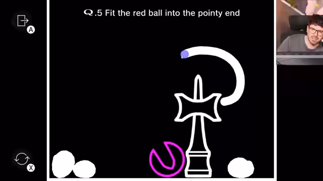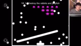 02:44:15Die nun folgende lange Sequ widmet sich dem Spiel 'Q Remastered'. Der Streamer kämpft mit den physikalischen Rätseln und braucht sehr viele Versuche. Er versucht mit den unterschiedlichsten Konstruktionen aus gemalten Linien und Bällen, die Aufgabe zu lösen. Oft scheitert sein Bau und er beklagt sich über das Pech. Seine Lösungen wirken oft willkürlich und basieren auf Trial-and-Error. Obwohl er oft frustriert ist, besteht er darauf, dass seine Erfolge auf Skill und nicht auf Glück beruhen.