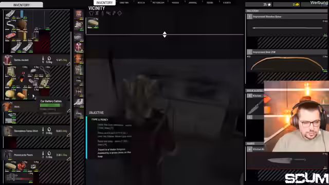 03:18:56Zu Beginn des Streamings wird intensiv in Survival-Game 'Scum' gespielt. Der Streamer sucht nach wichtigen Ressourcen wie Antibiotika, um eine sich verschlimmernde Infektion zu behandeln. Während der Suche wird beachtlicher Loot gesammelt, darunter Waffen wie eine HS9, ein Waffenholster, ein riesiger Rucksack und Vitamine, was die Erleichterung über den Fund but auch die Angst vor dem Tod aufgrund der Infektion zeigt. Ein Problem entsteht durch das Tragen einer Maske, das Essen unmöglich macht. Die Suche nach der Apotheke ist zentral, da die Infektion kritische Werte erreicht.