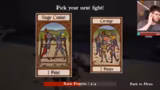07:04:26Zu Beginn des Streams wird eine ausgezahlte Wette erwähnt und der Streamer fragt, ob er Ausrüstung für den nächsten Kampf aufheben kann. Nach einem gewonnenen Kampf und Aufstieg werden mehrere Waffenoptionen diskutiert, darunter ein Bill Hook, von dem der Streamer behauptet, ein Spezialist zu sein. Es wird eine neue Wette eröffnet und der Streamer überlegt, ob Single Combat oder Spoilers die bessere Strategie sind, um den nächsten Bosskampf zu erreichen und die Wette zu gewinnen.