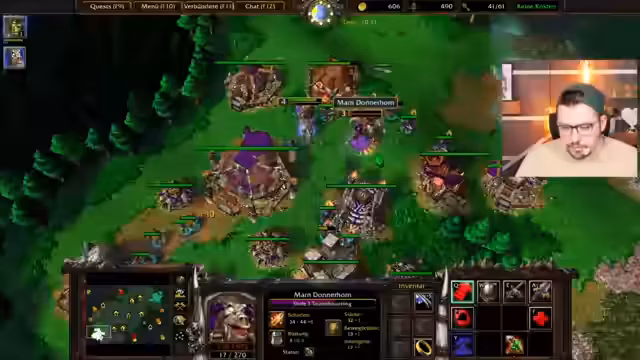 01:15:39Im Stream werden grundlegende Mechaniken von Warcraft 3 besprochen. So wird erklärt, wie man effizient Gebäude bauen kann, indem man mehrere Arbeiter auswählt und diese automatisch das nächste Gebäude errichten lassen, was den Prozess streamliniert. Auch strategische Fehler werden thematisiert, wie das unnötige Senden von Gold-Leuten in die Burgos, was zu viel Schaden führt und eine frühere Fehlentscheidung darstellt. Ein wichtiger Tipp ist es, den Gegner auf der Mini-Karte durch Einstellungen in rot zu markieren, um dessen Position und Bewegungen schneller überblicken zu können.