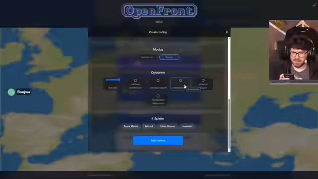 01:50:01Es wird überlegt, wie man die Teams für 'Open Front' aufteilt und ob der Team-Modus schon einmal gespielt wurde. Es stellt sich heraus, dass Salzy trainiert hat, obwohl ein Gentleman's Agreement bestand, dies nicht zu tun. Es wird diskutiert, ob man Teams bilden soll, um Marius zu balancen. Als Kompromiss wird vorgeschlagen, eine Runde FFA zu spielen und die Erst- und Zweitplatzierten in ein Team zu stecken. Es wird überlegt, ob ein Zweierteam überhaupt ein Vorteil ist. Franzi schreibt, dass sie Post bekommen hat und möglicherweise doch teilnehmen kann, was für Aufregung sorgt. Es wird bedauert, dass Franzi kurzfristig abgesagt hat, obwohl viele Leute gerne mitgespielt hätten. Die erste Runde 'Open Front' wird gestartet und es wird nach Mitspielern in Süd- und Nordamerika gesucht. Die Stärke der Bots wird als 'insane' beschrieben.