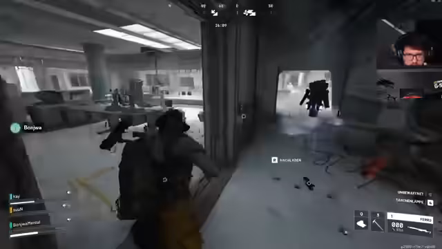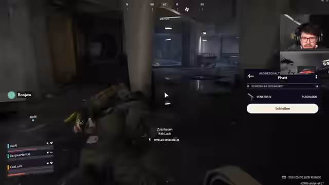 01:26:32Der Stream konzentriert sich auf intensive Raids auf der Map Mad Bay. Dabei werden komplexe Taktiken wie das Setzen von Ködergranaten und das Nutzen von Smoke-Granaten beschrieben. Das Team verliert oft den Überblick über die Position gegnerischer Spieler und gerät unter starken Druck, wenn es von mehreren Teams gleichzeitig angegriffen wird. Besonders hektisch werden Situationen, in denen Spieler aus dem Hinterhalt angegriffen werden und versuchten, sich in verlorenen Positionen zurückzukämpfen. Oft enden die Kämpfe mit dem Down der eigenen Spieler, da die Munigung und der Schild aufgebraucht sind. Trotzdem wird das Gameplay als unterhaltsam und anspruchsvoll beschrieben.