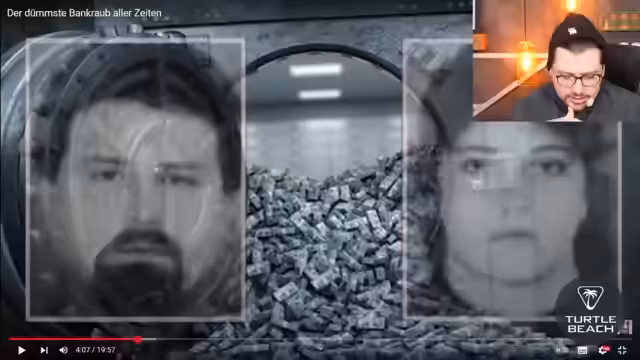 00:35:05Es wird die Open Beta von Bazar erwähnt, die am 5. März beginnt und zum Download für Windows verfügbar ist. Während des Downloads soll ein Video angesehen werden, wobei die Zuschauer zwischen 'dümmsten Bankraub aller Zeiten', 'UNO' und 'Traumberuf Gamer, das Gehalt als E-Sport-Profi und Streamer' wählen können. Der Chat startet einen Balkenkrieg, um über die Videoauswahl abzustimmen. Letztendlich wird das Video 'dümmste Bankraub aller Zeiten' von Skiks ausgewählt und angesehen. Das Video handelt von einem realen Bankraub in den USA, bei dem ein Tresoraufseher namens David mit Hilfe seiner Arbeitskollegin Kelly und deren Schulfreund Steven Millionen Dollar stiehlt. Der Plan ist jedoch von Anfang an zum Scheitern verurteilt, da die Beteiligten ungeschickt vorgehen und auffällige Fehler machen.