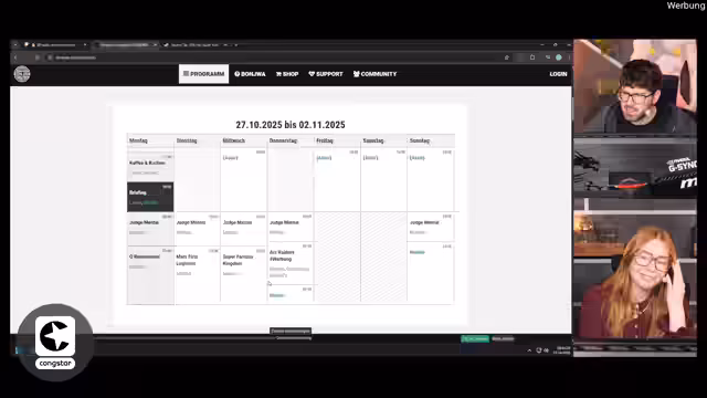 02:50:32Der Fokus liegt auf dem bevorstehenden Quizshow-Event, das wegen Leons Urlaub und Astas Krankheit auf den 04.11. verschoben wurde. Ein Hauptanliegen ist die Bonjoa-LAN vom 09. bis 13.11., ein Charity-Event, für das bereits einige Partner und Teilnehmer wie Edo P. Keklak und Jen bekannt sind. Für die LAN sind sowohl LAN-Spiele wie 'Control & Dominate' als auch Showformate wie Quizze geplant. Für die aktuelle Woche stehen Judgmental, Mars First Logistics und ein Geheimtipp, 'Fantasy Kingdom', auf dem Programm. Spiele wie Ark Raiders mit Dalu und Kaddi sind ebenfalls terminiert.