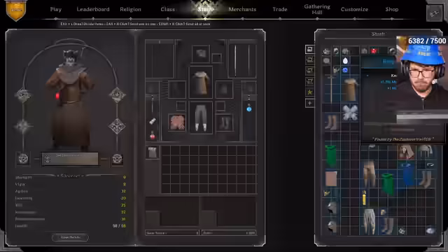 01:15:39Der Stream startet mit erkundungsphasen in der Spielwelt. Der Streamer wurde von anderen Spielern ausgeraubt und hat anschließend deren Ausrüstung gelootet. Es wurden Gegenstände wie Knowledge Cape, Vision Crystal und verschiedene andere Items gesammelt. Der Streamer überlegt, ob und welche Gegenstände behalten werden sollen und welche am nützlichsten sind für den weiteren Spielverlauf. Die Aktivitäten sind geprägt von ständigen Bewegungen und Entscheidungen über die Beute.