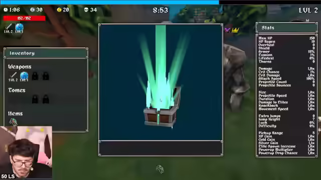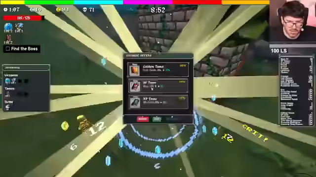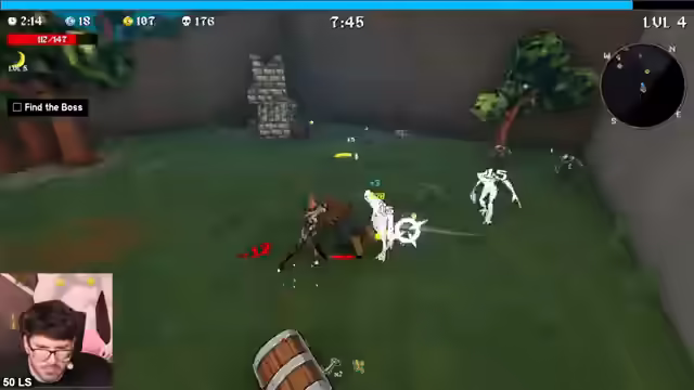 04:11:35Die Axt wird als unpassend empfunden, weshalb erneut Sir Ufi gespielt wird. Es wird überlegt, ob Knockback Lifestyle oder Knockback Quantity gewählt werden soll, um die 2 Minuten zu schaffen. Die Scythe wird als krass bezeichnet, aber Knockback ist wichtiger. Es wird nach Lifestyle gesucht. Es wird festgestellt, dass das Schwert bereits Knockback hat. Quantity und Crit Chance werden in Betracht gezogen. Das Skippen von Optionen fühlt sich schlecht an, daher wird ein Refresh durchgeführt. Die Axt wird aufgrund von Quantity gewählt. Es wird festgestellt, dass die Axt komplett krass ist. Quantity boostet sowohl die Axt als auch das Schwert. Es wird auf Count und Attack-Speed gesetzt. Schreine und Kisten werden gesucht. Der Axtschwertmann kommt, um alles zu vernichten. Ein Magnet wird gefunden. Es wird das Ziel formuliert, mit diesem Run die 2 Minuten zu schaffen. Attack Speed wird genommen. Der Build wird als giga-broken bezeichnet. Es wird überlegt, ob Damage oder Perigeneration gewählt werden soll. Der Boss soll verflucht werden, aber es gibt keine aktive Möglichkeit dazu. Der Magnet kann nicht mehr geholt werden, der Boss ist wichtiger. Es wird das Ziel formuliert, Stufe 2 mit diesem Build zu schaffen. Der Boss wird gefunden. Move-In Suite wird als gut bezeichnet. Es bleiben drei Minuten zum Farmen. Eine Boombox wird aktiviert. Der Build wird als geil bezeichnet. Eine Stopwatch wird gefunden, um den Boss zu kiten. Es wird versucht, sich an die Position der Stopwatch zu erinnern. Es verbleiben zwei Minuten. Es wird nach dem Boss gesucht. Der Boss portet sich hinter den Streamer. Der Knockback zieht den Boss weg. Drei Quests werden geschafft. Es wird überlegt, warum die Ecke gewählt wurde. Die Aegis wird als neue Waffe freigeschaltet. Idle Juice wird als Fähigkeit freigeschaltet, die mehr Damage verursacht, je länger man stillsteht. Es wird überlegt, ob der Tomb Slot wichtiger ist als der Weapon Slot. Es wird festgestellt, dass die späteren Level mehr Zeit haben. Es wird zu Bonja Chill gewechselt, um einen Tier 2 Run zu starten. Waffen-Level wird als besser als Tomb-Skill angesehen. Ein guter Run wird erwartet.