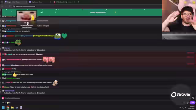 01:34:03Es wird über die finanzielle Situation amerikanischer Streamer spekuliert, nachdem Ed Sheeran in einem Stream aufgetaucht ist. Wirth, ein ehemaliger Redakteur und Moderator von Rocket Beans TV, stellt sich vor und sucht einen neuen Job ab November 2026 im Gaming-Bereich. Seine Expertise und Leidenschaft für Videospiele seit 1993 werden betont, ebenso wie sein Sinologie-Studium. Es wird ihm empfohlen, seinen eigenen Gaming-Kanal zu starten. Anschließend wird ein Clip gezeigt, in dem die Bubis gezeigt werden. Es folgt die Ankündigung von Veränderungen, da Jen umzieht und eine Woche offline sein wird. Es wird versichert, dass Jen nun offiziell zum Team gehört, aber es wird betont, dass beim Umzug nicht geholfen wird. Abschließend wird über den letzten Stream von Jen und ihr Bett gesprochen.