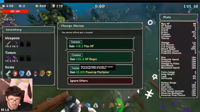 04:08:15Ein entscheidender Durchbruch wird erzielt, als die Kombination aus Knockback-Skill, Lifesteal und der Fähigkeit 'Quantity' als extrem stark erkannt wird. Mit diesem Build gelingt es erstmals, die schwarzen Geister für zwei Minuten zu überleben, was ein zentrales Questziel ist. Der Erfolg wird durch strategisches Nutzen von 'Schreinen', die Schadens- und Geschwindigkeitsboni gewähren, sowie durch geschickte Positionierung in Ecken erreicht, um den Angriffswinkel der Gegner zu minimieren.