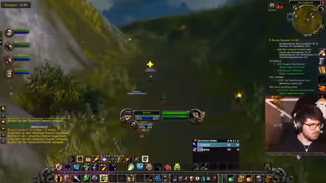 02:22:13Der Streamer ist bei einer Schildkröten-Quest im Vorgebirge unterwegs, wobei er versehentlich in das gefährlichere Alterac-Gebiet vordringt. Er beschreibt das Gebiet als bedrohlich mit einem Elite-Drachen und einem Hordelager. Obwohl er gefährliche Gebiete meidet, nutzt er die Zeit, um Quests abzuschließen und Ressourcen wie Zinn und Muscheln zu farmen, während er gleichzeitig mit der Interaktion mit der Community fortfährt.
