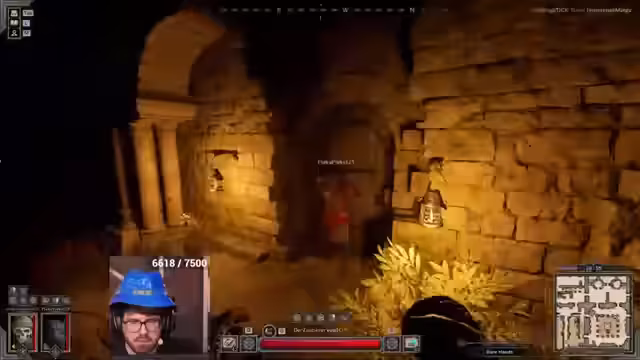 04:57:10Im Fokus steht die Erkundung und das Farmen in einem dungeon-ähnlichen Spiel. Der Sprecher sucht nach legendärem Loot und verbessert seine Ausrüstung. Es gibt strategische Entscheidungen, wie die Verfolgung eines Bossraums oder das Sammeln von Ressourcen, wobei die Räume dynamisch und teilweise unübersichtlich erscheinen. Die Logik des Raumlayouts wird hinterfragt, als der Streamer feststellt, dass der erwartete Bossraum leer ist und stattdessen ein anderer Raum mit einem Lich als Boss freigelegt wird.