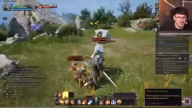 01:51:07Der Streamer setzt das Throne and Liberty Gameplay fort, indem er sich an Henrys Grab begibt, um eine Quest fortzusetzen. Es wird über die Steuerung und das Kampfsystem diskutiert, einschließlich des Ausrüstens von Waffen und der Verwendung von Fähigkeiten. Der Streamer erinnert sich daran, die Wölfe in der Vergangenheit beschützt zu haben. Es wird erklärt, dass die Skills von der ausgerüsteten Waffe abhängen. Der Streamer findet sein Großschwert und testet das Kampfsystem. Er muss zurück zur Abbey. Die Quest führt zu einem Traum, in dem der Streamer Iscael alleine in der Abbey sieht und weiß, wie er gegen ihn kämpfen kann. Es wird erklärt, wie man zwischen Waffen-Sets wechselt und die verschiedenen Skills einsetzt. Der Streamer spricht mit Sorys Vater Frederic. Es wird erläutert, dass nur die Outdoor-Tags durch den Waffenwechsel beeinflusst werden. Die lila Questline ist die Main-Questline. Der Streamer betont, dass Kritik im Discord geäußert werden soll, nicht im Chat. Der Streamer untersucht einen alten Petroleum-Topf und bezeugt vergangene Ereignisse mit dem Unendlichkeitsgrad. Es wird eine Szene aus der Vergangenheit durchgespielt, in der Henry seine Torch auf die Lamp-Oil in der Storeroom gründete und mit Iskail starb. Der Streamer gleitet von der eingestürzten Mauer, um Helpi die Flüsterinsel zu sehen.