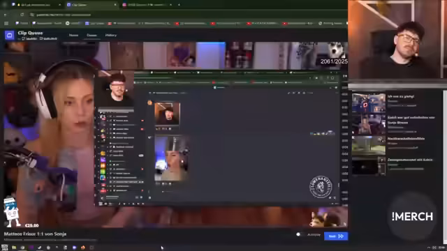 00:15:44Der Stream beginnt mit technischen Problemen, da nach einer technischen Umstellung ein falsches Menü und ein fehlerhaftes Intro angezeigt werden. Maurice und Yannick arbeiten seit 13 Uhr an der Behebung der Probleme. Matteo kann die Seite nicht richtig bedienen und landet immer wieder auf einer Fehlerseite, wenn er versucht, zu den Clips zu gelangen. Nach einigen Versuchen und der Hilfe von Maurice scheinen die Knöpfe wieder richtig zu funktionieren, und Matteo kann die Clips und Intros abspielen. Er äußert sich zu den Neuerungen bei den Intervallen und der Bedienung der Software, die durch Updates entstanden sind. Trotz der anfänglichen Schwierigkeiten kann der Stream fortgesetzt werden, während die Techniker im Hintergrund weiterarbeiten.