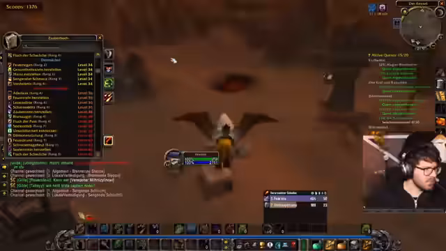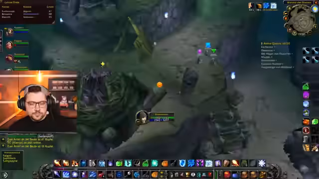 14:58:50Die Gruppe verlässt die Innenlandung und widmet sich wieder dem Questing und Leveln im Gebiet Schlingendorn-Tal. Es werden neue Quests angenommen und über den zukünftigen Raidplan gesprochen. Man bereitet sich auf World Buffs vor und fliegt dafür nach Booty Bay. Die Spieler diskutieren, welche Quests sie annehmen sollten und wie sie ihre Ressourcen wie Spinnenseide für das Craften von Ausrüstung am besten verwalten können, um stärker für den Raid zu werden.