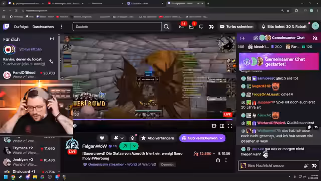 08:00:38Es wird ein Vergleich zwischen den Fraktionen Horde und Alliance angestellt, insbesondere im Hinblick auf Klassenfähigkeiten und -vorteile. Geplant sind gemeinsame Dungeon-Runs mit anderen Gruppen, darunter ein spezieller Run am Abend. Der Streamer äußert Interesse an einer Fraktionswechsel und diskutiert strategische Aspekte für zukünftige Kooperationen innerhalb des Spiels.