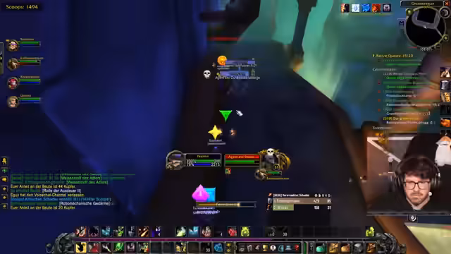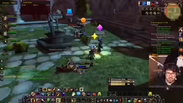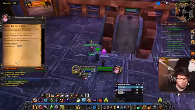 10:04:38Die Streamer versuchen, eine Gruppe für den Schattenkloster-Dungeon zu bilden. Es kommt zu erheblichen technischen Hürden, da die Spieler die Gruppe nicht finden und auch das sogenannte 'Layering', das gemeinsame Spielen in derselben Spielwelt, nicht funktioniert. Dies führt zu großem Frust und Verwirrung. Trotzdem gelingt es der Gruppe, sich zu finden und den Dungeon zu betreten, wo sie auf mehrere Boss-Gegner trifft und nach Loot sucht. Der erste Boss wird besiegt, der Loot wird geteilt und strategische Besprechungen finden statt.