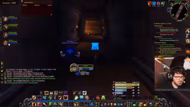 13:58:50Der Streamer steht kurz vor einem Level-Up und nutzt die Gelegenheit, seine neuen, stärkeren Fähigkeiten wie 'Feuerregen' und 'Verderbnis' sowie bessere Heilsteine zu erlernen. Er versucht vergeblich, sich selbst nach Ironforge zu portieren, da das Portal nicht funktioniert und es zu spät für die geplante Aktion ist. Die Gruppe beschließt daher, direkt mit dem Dungeon zu beginnen. Währenddessen witzelt der Streamer über die Komplexität von technischen Problemen und persönlichen Schwächen, die erfolgreiche Handlungen verhindern können.