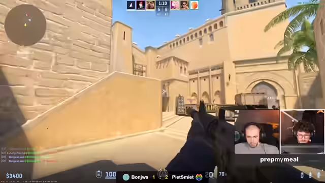 04:43:46Der Wechsel zu Counter-Strike markiert einen neuen Abschnitt. Zuerst konfigurieren die Spieler die Spielumgebung, indem sie Befehle zur Steuerung der Sensibilität der Maus eingeben. Nach einem kurzen Warm-up, bei dem versehentlich Friendly Fire aktiviert und genutzt wird, beginnt das ernsthafte Spiel. Die erste Runde, eine sogenannte 'Eco-Runde', wird mit minimaler Ausrüstung gespielt, was die Notwendigkeit von taktischem Vorgehen und Baiting unterstreicht. Der Fokus liegt auf der Sammlung von Informationen und dem Vorbereiten auf die nächsten, besser ausgerüsteten Runden.